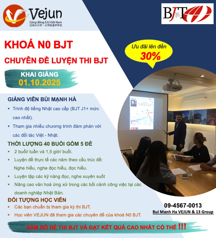 KHOÁ HỌC N0 BJT - CHUYÊN ĐỀ LUYỆN ĐỀ BJT